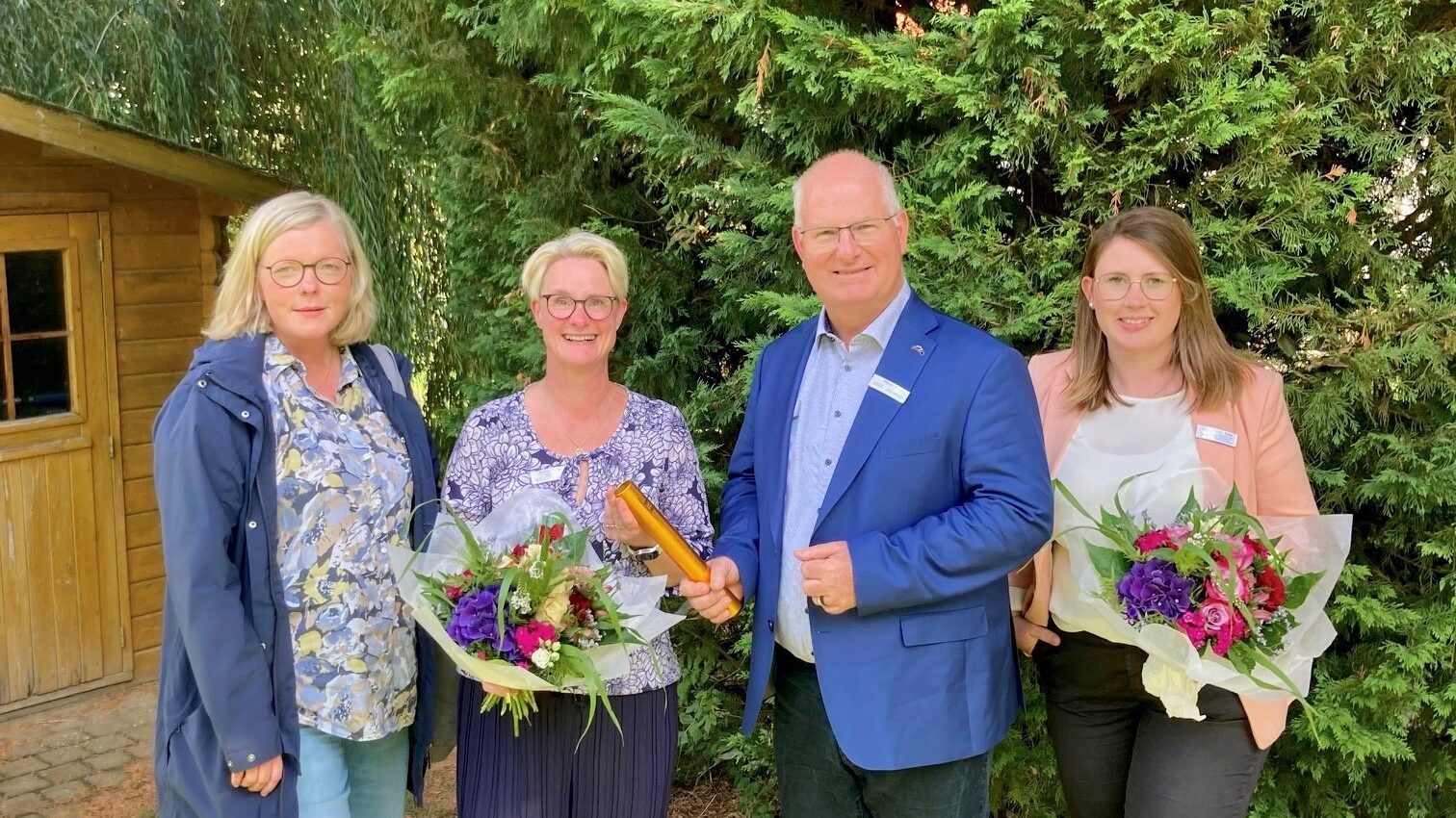 Paderborn. Keine Angst vor den Honigbienen. Das war nicht nur ein gut gemeinter Ratschlag für die Kinder, das stimmte auch: 15 Jungen und Mädchen aus der katholischen Kita Maria zur Höhe besuchten jetzt die Bienenstöcke am Ostfriedhof. Hobbyimker Michael Dreier hatte allerlei Ausrüstung mitgebracht und zeigte den Vier- bis Sechsjährigen, wie es in einem Bienenstock aussieht. Staunend ließen sich die Jungen und Mädchen, ausgestattet mit einem Imkerhut, das neue Volk des Hobbyimkers und zugleich Bürgermeisters Dreier zeigen. Der Nektar wird zu Honig, die Pollen dienen als Futter für die vielen Eier, die die Königin gelegt hat, das können bis zu 2.000 pro Tag sein, erfuhren die Kinder. Bei ihrem Wildbienenfest und Verleihung des Zertifikates „Kita-Fair-Nachhaltig-Gerecht“ durch die Katholische Kindertageseinrichtungen Hochstift gem. GmbH hatte der Bürgermeister die Kinder als erste Kita-Gruppe überhaupt eingeladen, ihn und seine Bienenstöcke zu besuchen. Jetzt machte er das Versprechen wahr. Zum Dank gab es für den engagierten Imker natürlich einige leckere Stücke „Bienenstich“. Frohgemut und trotz der Bienenfülle ohne einen einzigen Stich ging es für die Kinder nach einer Stunde mit den Bienen zurück in die Kita.
