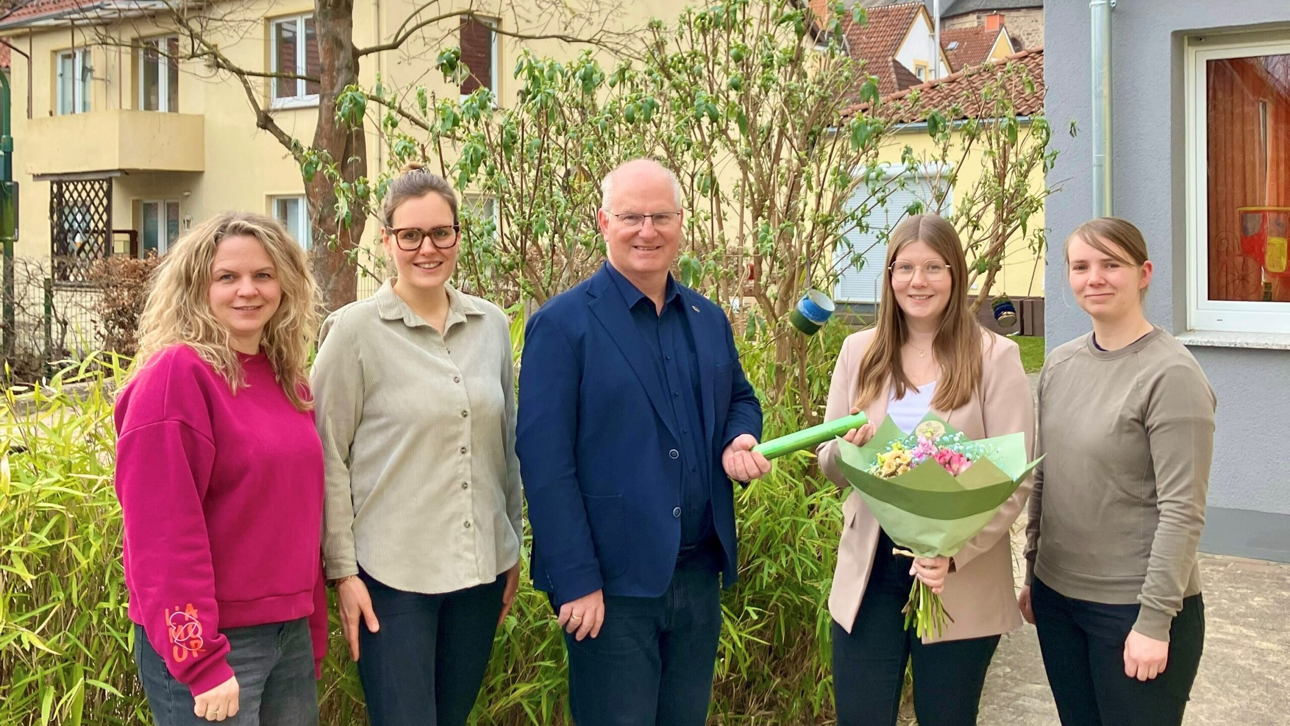 Dass sich alle erst einmal eingewöhnen müssen, ist für die neue Kita-Leitung Nina Siemerink klar. Die 32jährige war bis zur Elternzeit Leitung in Bad Lippspringe. In Driburg hat sie nun ein neues, aber zugleich erfahrenes Team. Zu sechst können sie mit den ersten Kindern das ganze Gelände erkunden. Zum bereits bestehenden Spielplatz oben an der Alleestraße kommt noch die große Wiese zum Spielen und Entdecken unterhalb der Kita hinzu. Bodentiefe Fenster sollen den Kindern dazu den Blick nach außen ermöglichen. Eine eigene Malwand wird ihr kreatives Erleben fördern. Teiloffen wird die neue Einrichtung arbeiten. Neben dem Schwerpunkt der Religionspädagogik fließt auch die Montessori Pädagogik in das neue Konzept mit ein.