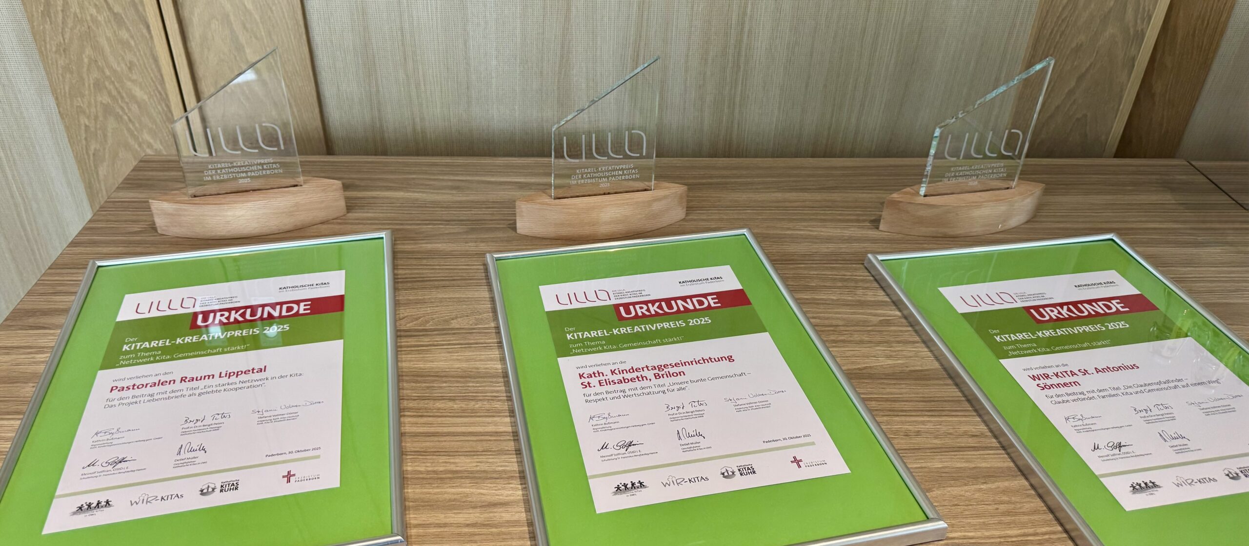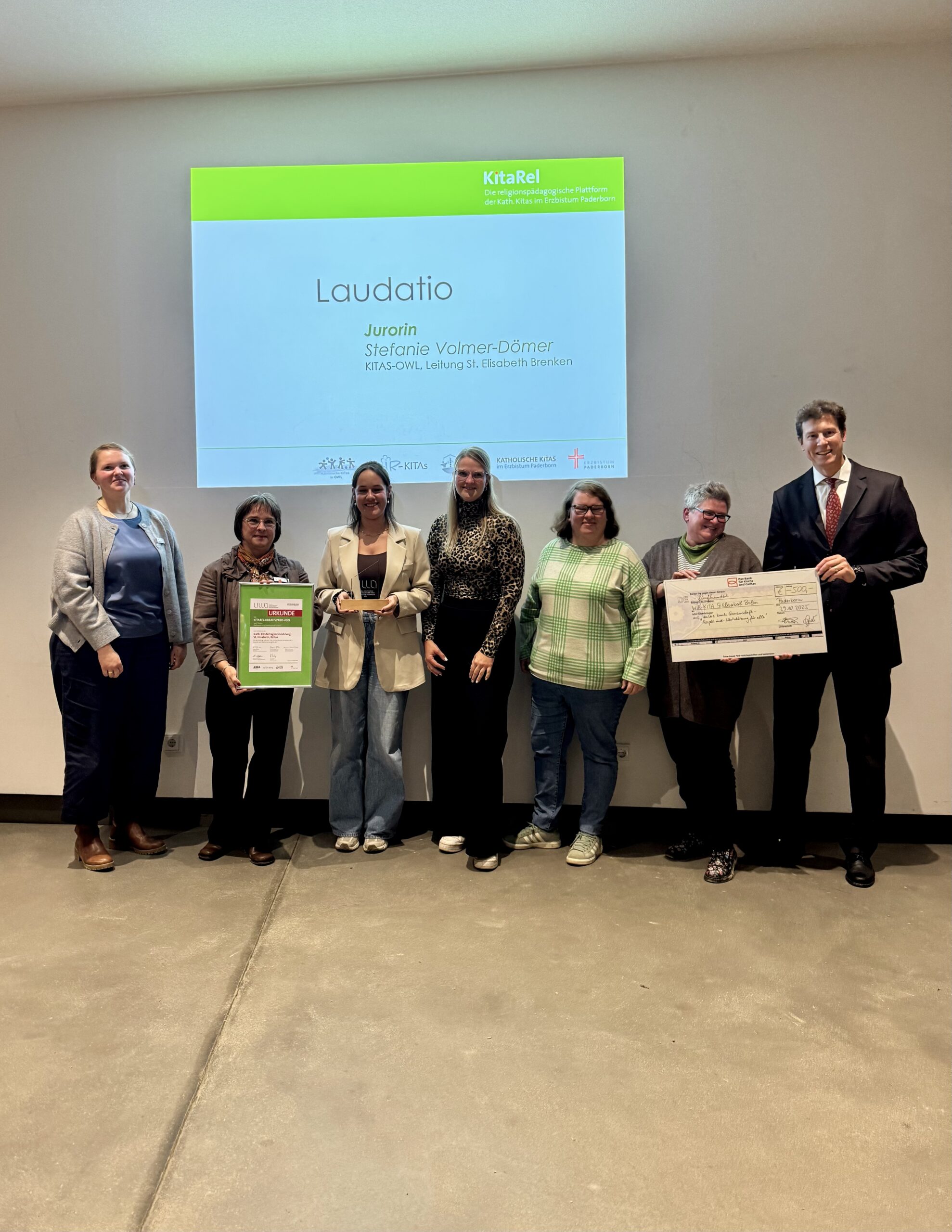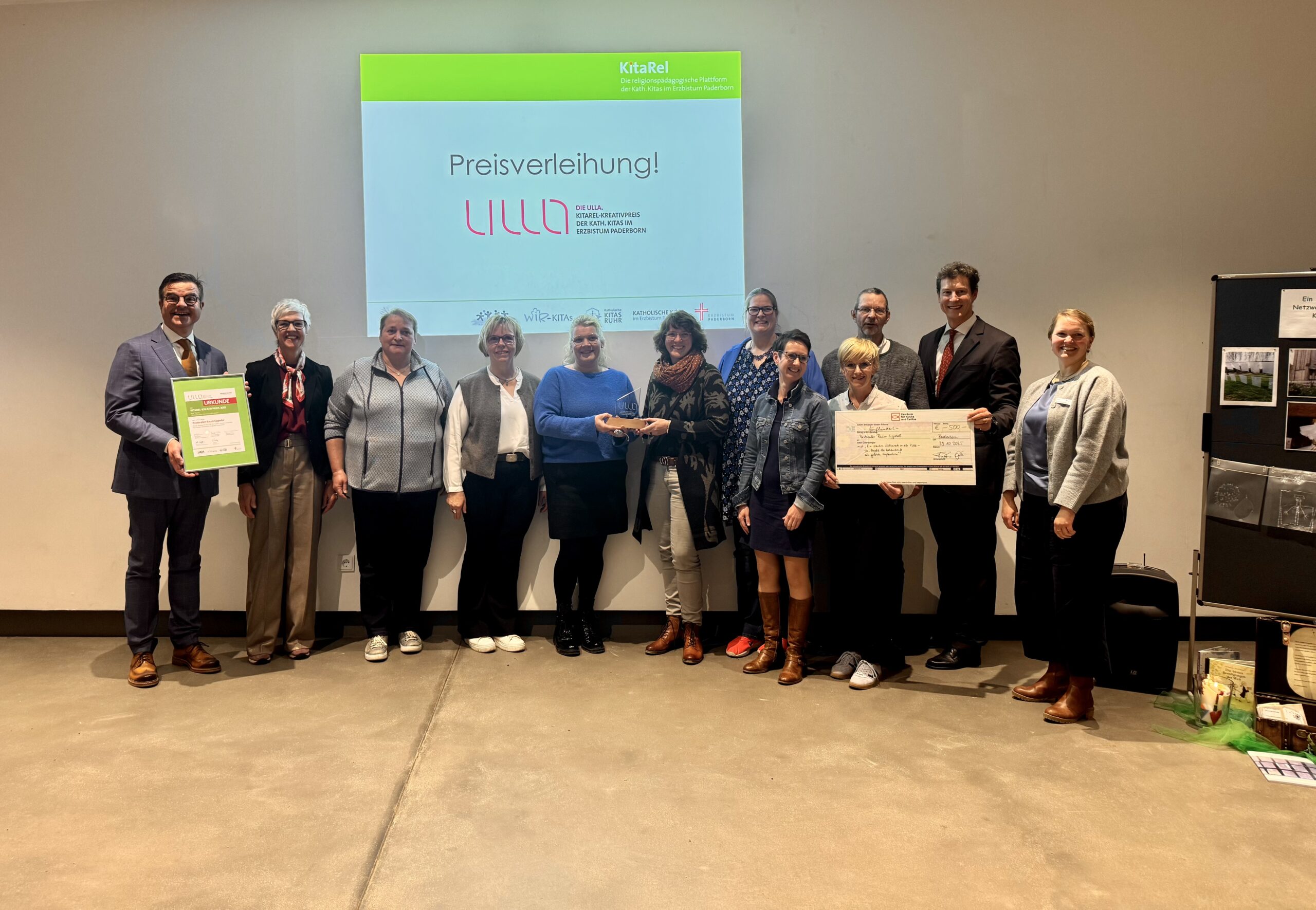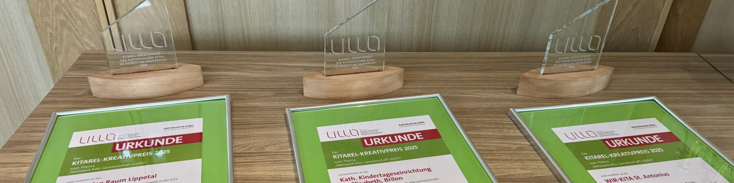 „Die Arbeit in Kitas ist heute anspruchsvoller und zugleich bedeutender denn je. Ihre heute ausgezeichneten Projekte zeigen eindrucksvoll, was entstehen kann, wenn sich Menschen und Einrichtungen zusammenschließen – im Pastoralen Raum und im Sozialraum. Wenn Netzwerke wachsen, Vertrauen entsteht und alle gemeinsam Verantwortung übernehmen, wird Gemeinschaft gestärkt“, führte Julia Brodersen-Schäfers, Referentin der Kompetenzeinheit Kindertageseinrichtungen im Erzbistum Paderborn und Verleiherin, wertschätzend in den Abend ein. Unter dem Motto „Netzwerk Kita: Gemeinschaft stärkt“ wurden vierzehn Beiträge eingereicht, die zukünftig auf der Internetplattform KitaRel.de andere Kitas und Verbünde inspirieren werden. In den Kategorien Bezug zum Thema, vom Kind ausgehende Religionspädagogik, Innovation, Partizipation, Vernetzung, Selbstreflexion, Alltagstauglichkeit, Nachhaltigkeit und Beteiligungshürde begegnen sich dabei viele der Beiträge auf Augenhöhe. Die Entscheidung ist der Jury nicht leichtgefallen. Neben den Gewinnern werden auch weitere herausragende Projekte mit dem ULLA-Tipp-Sternchen online prämiert und sind so für die User schnell zu identifizieren.