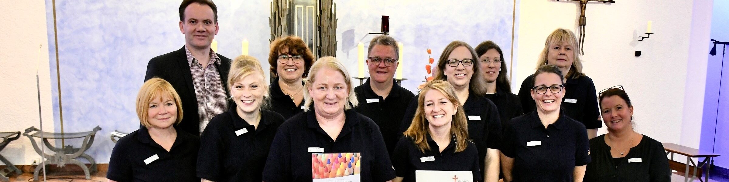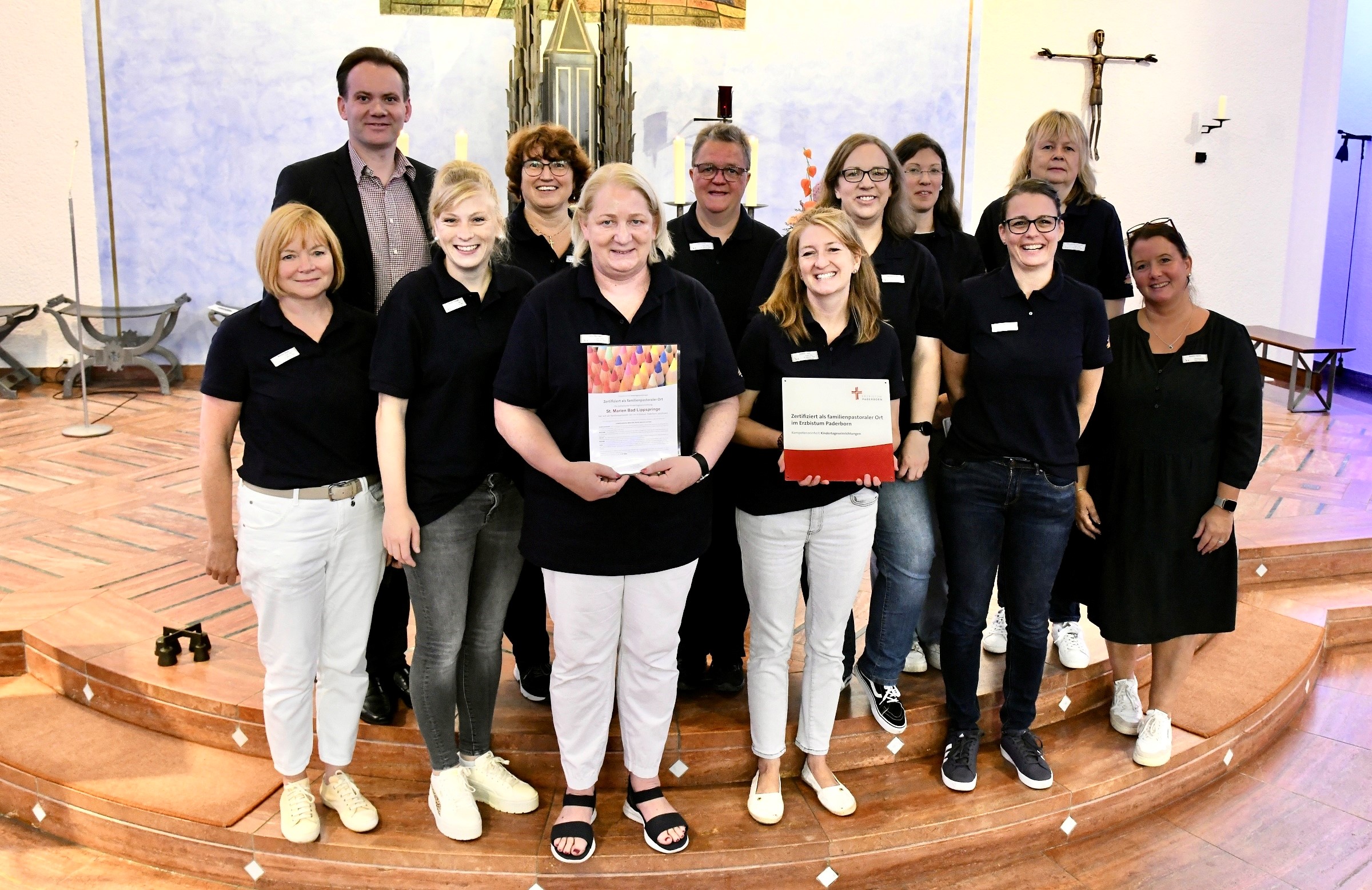 Die KiTa St. Marien in Bad Lippspringe wurde als Familienpastoraler Ort zertifiziert. Darüber freuen sich (Hinten von links): Gemeindereferent Herr Hüsken, pädagogischen Fachkräfte Angelika Dorniß, Iris Fricke, Daniela Bobbert, Michaela Koch und Elke Jöring- Schmidt
